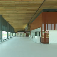 las llegadas discurren en un mismo nivel. El vestíbulo principal, que