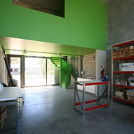 vida de la obra. La idea tipológica esta formada por dos L superpuestas, una de ellas contiene el espacio de uso público, y esta ubicada en planta baja, es el atelier propiamente dicho, que permite el ingreso de los alumnos para ver el trabajo del artista. La parte privada está compuesta por una habitación, living comedor, cocina, baño y una terraza para aprovechar las increíbles vistas desde el tercer piso hacia el parque Sarmiento.