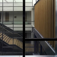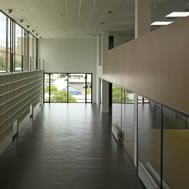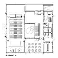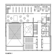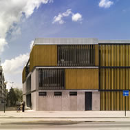 Biblioteca y Centro de Convivencia en Zaragoza (España) La Biblioteca Benjamín Jarnés está ubicada en el Distrito Actur de Zaragoza y tiene actualmente una superficie insuficiente para desarrollar su función. A propuesta del Consejo de Patronato se propone la construcción de un nuevo equipamiento sociocultural, en el que se reubicará la Biblioteca. Siguiendo criterios de racionalidad y economización de recursos materiales y medios humanos se acuerda la creación de un edificio que albergue un nuevo Centro de Convivencia para Mayores y la reubicación de la Biblioteca Benjamín Jarnés. Emplazada en el angular de las calles Pedro Laín Entralgo y Gertrudis Gómez de Avellaneda, la Biblioteca se presenta ante su entorno inmediato como un elemento con vocación urbana. El Actur es un barrio de expansión de 70-80, con una anodina trama de inmensas avenidas y un desarrollo residencial acelerado. Por el contrario las especies arbóreas son de las de mayor porte de la ciudad. Es un barrio que desde el coche te invita a pasear pero que debido al binomio cierzo-sección vial no lo permite. Con la misma idea se ha considerado que una construcción que genera confort ambiental no debe descuidar los criterios de excelencia medioambiental. Así pues se han utilizado otros mecanismos de arquitectura bioclimática: fachada ventilada, acumuladores solares en cubierta para calefacción y ACS, carpinterías con rotura de puente térmico, uso de maderas con documento de reforestación, control de soleamientos, etc. El Centro de Mayores y Biblioteca se conforma como una pieza de tres plantas y sótano. El proyecto ha surgido teniendo en cuenta la prefabricación como método de control y celeridad en la ejecución de la obra. El programa se desarrolla en cuatro plantas. Se plantea un esquema de planta con patio central abierto que comunica las 4 plantas del edificio y que proporciona una gran iluminación y una relación entre los distintos espacios. Las zonas de servicios se han concentrado en la misma vertical del edificio con el objetivo de economizar y facilitar el paso vertical de las instalaciones. Las estancias destinadas a personas mayores se han ubicado lo más próximas a la cota de la calle para facilitar el acceso a ellas. El acceso principal se produce a través de un porche situado en la esquina Norte de la Calle Pedro Laín Entralgo, lugar donde se produce la máxima apertura hacia la parcela. El vestíbulo se propone como un gran espacio pasante que comunica el interior del edificio con las dos calles laterales, provocando una prolongación del espacio público de la calle hacia el interior del edificio propuesto. El salón de actos se sitúa cercano al acceso, junto a una sala multiusos que ofrece la posibilidad de albergar actividades relacionadas con los eventos celebrados en el salón de actos y una posible utilización de este espacio tras los espectáculos. La biblioteca se sitúa en la zona Norte del edificio, garantizando una correcta iluminación de este espacio. Ocupa parte de las plantas primera y segunda, relacionándolas entre sí con un gran espacio de doble altura que comunica las distintas áreas. Las zonas más transitadas se sitúan dentro de este gran espacio dejando en un lateral del edificio la sala de estudio que es la zona más silenciosa de la biblioteca. Otra característica del proyecto es la posibilidad de abrir al público diferentes áreas sin que el resto interfiera en la circulación general. De esta manera, es posible la utilización del edificio con el cierre de las dependencias que no se desea utilizar. El área del edificio destinada a personas mayores se dispone principalmente en planta baja, con el salón de actos; sótano, con el aula de dinámica y primera, con las aulas y talleres. Las aulas y talleres se separan mediante sistemas de tabiquería móvil que permiten la unión de los dos en uno, posibilitando un espacio más amplio para más alumnos. En los acabados exteriores se han seguido los criterios antes citados cubierta plana, fachada ventilada con acabado de tableros aglomerados de madera-cemento, tipo VIROC de acabado natural y carpinterías de acero y madera con rotura de puente térmico. El mínimo número de huecos aumenta el control del perímetro. En los patios, protegidos del ambiente exterior se permite la opción contraria con carpinterías de muro cortina con rotura de puente térmico Jansen y vidrios bajo-emisivos de control solar. La biblioteca trata de conciliar al paseante-usuario con el tejido. El edificio seduce con un juego de vistas cruzadas en un aparente prisma ciego. El emplazamiento nos ofrecía un retranqueo de alineación que hemos canalizado en la entrada atravesando visualmente la planta aun sin entrar en ella. Se regala una pausa en el recorrido y una invitación a entrar. Interiormente el edificio es muy sencillo comprensible en un flash a través del patio. El programa de biblioteca y centro de ocio para mayores se ordena en un tetris de cuatro plantas entorno al vacío central aprovechando fachadas y orientaciones. De dentro hacia fuera se generan panorámicas con la tutela del edificio hacia los parking y aprovechando el porte de las especies cercanas.