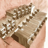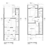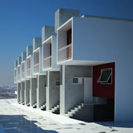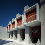 With the main duty to tell the world how architecture can contribute to good housing solutions for those who has a less-favored income, this project begins with the ideal that social housings can unite both aesthetic and functional qualities, with no need of high costs. A project of a residential complex was needed, and it should combine low cost and a new architecture, to enforce the ideal of quality in a new developer enterprise. Thus, using a cleaning and formal rationality, it was possible to develop a set of 17 low-cost units. The structural solution, achieved through innovative ideal, show a mixed structure of masonry and conventional structure in which the slab with a large windward sheet is mounted in a beam (flat, so as not to be noticed in the rear below), which in turn connects to the main structure of the house. In a high place and with an expressive slope, the project has an inside street which connects units, providing an axis of great visibility of the surroundings. Each residence has a one car garage above. To don't exceed the legal high limit of 6 meters tall established by the city, it was designed a mid-low level to accommodate the garage, deposit and a working area, on the next floor (mid-high level), there is the living room, toilet, kitchen and the service area. The second floor accommodates two bedrooms and a bathroom. The water tower stands as a structural, plastic and low cost solution to the project, because it is located on the front facade of each unity, giving a individual touch, while concentrating all wet area in only one point. The details of the project are all largely concerned, mostly to provide economy. It has been described all the way l from the edge of drippers in all slabs, to the interior of the water tank. The total area is 1011 m², and the area of each unit is 46 m².