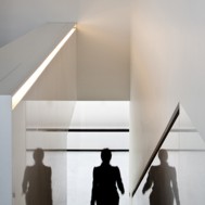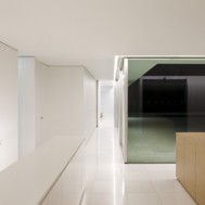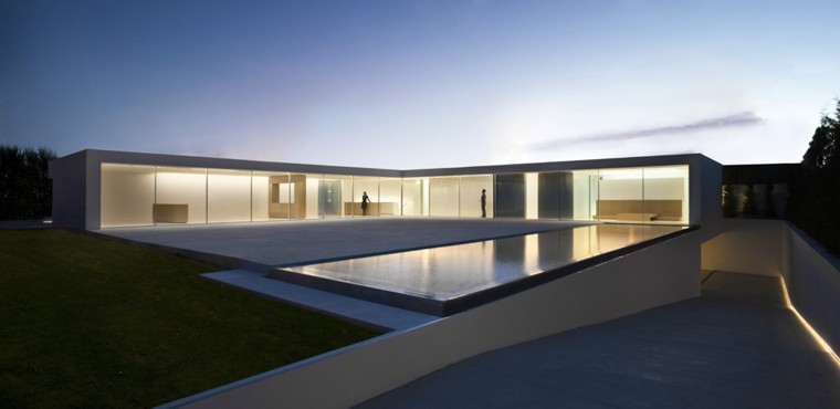 Una Casa situada en una zona urbana que parte del deseo de maximizar la sensación de amplitud. Se usan dos estrategias. La principal consiste en liberar la mayor superficie posible en el centro del solar permitiendo disfrutar de un espacio privado con una altura y volumen incalculables. Se potencia el perímetro de contacto de la vivienda con el exterior, entendiendo parcela y vivienda como un todo continuo. Por otro lado se aprovecha el desnivel existente con el barranco próximo para iluminar el sótano, lo cual le posibilita acoger parte del programa. La edificación se desarrolla a lo largo de los lindes Sur y Oeste de la parcela, que junto a los elementos que componen la urbanización del solar, configuran una suerte de atrio, cuya diagonal fuga hacia una visión lejana de la Sierra Calderona. El acceso se produce acompañado por la fachada Sur hasta encontrar el punto de intersección. En este lugar de visión privilegiada se ubica el distribuidor que junto a la escalera y la cocina vertebran el funcionamiento de la vivienda. La zona Sur en la que se disponen las estancias de día, desmaterializa su presencia gracias a la luz cenital. En la zona Oeste las habitaciones recaen a una porción de parcela con una escala más doméstica, mientras la habitación principal se asoma a la luz de levante reflejada sobre el agua. En la parte oscura del sótano se encuentran el garaje y la bodega. El resto de usos del programa miran al barranco a través del cual se iluminan. A House in a urban area parts of the desire to maximize the feeling of spaciousness. Two strategies are used. The principal is to release the largest possible in the middle of the site allowing you to enjoy a private space with a height and volume incalculable. It enhances the perimeter of contact with the outside housing, land and housing understood as a continuum. On the other hand uses the existing slope to the ravine next to illuminate the basement, which enables you to host the program. The building is developed along the southern and western boundaries of the parcel, which together with the elements of urbanization of the site, form a kind of atrium, whose diagonal flight to a distant vision of the Sierra Calderona. Access is accompanied by the south facade to find the point of intersection. At this point of view inside the distributor is located next to the stairs and the kitchen form the backbone of the operation of housing. The southern zone where the rooms are available during the day, dematerialized their presence due to the overhead light. In the west the rooms fall to a portion of parcel with a more domestic scale, while the master bedroom overlooking the lift light reflected on water. In the dark basement and garage are in the cellar. All other uses of the program look into the ravine through which light up. CASA DEL ATRIO . GODELLA . VALENCIA ARQUITECTURA: FRAN SILVESTRE ARQUITECTOS DISEÑO INTERIOR: ALFARO HOFMANN ARQUITECTO DE PROYECTO: Fran Silvestre Navarro _ Mª José Sáez