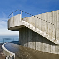 antesala al camino que recorre la parcela, que De los condicionantes del lugar se derivan tanto el deseo de desaparecer como la necesidad de proteger, en aquellos días, frecuentes en nuestra costa, en los que el viento del noroeste y la lluvia convierten el lugar en desapacible. El camino gira buscando esa protección del viento, convirtiéndose en muro que se pliega y busca un lugar profundo desde el que mirar ese paisaje. Las vistas aparecen y desaparecen en este caminar para hacerlas menos evidentes. Imágenes gentileza > peña ganchegui y asociados hacer click en las imágenes para ampliarlas |
