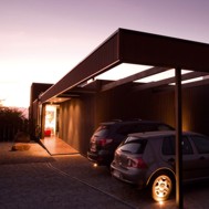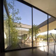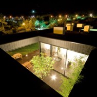 Casa En Piedra Roja El encargo es una casa individual para una familia joven, situada en un área suburbana en desarrollo en el norte de santiago, con un clima mediterráneo árido. Conceptualmente se trabajo con ideas de casas tradicionales de la zona central de chile (mediterráneas). Valorando los espacios intermedios como parte fundamental en la vida diaria y en la integración del exterior al interior. A través de patios interiores de distintas cualidades y zonas techadas a modo de los tradicionales corredores. Que permiten ser habitados tanto en verano (Sombreados) como en invierno (asoleados). La casa se configura como un rectángulo orientado norte sur, al cual se le inyectan burbujas de aire, a modo de patios que se relacionan y cualifican según los programas de sus bordes, que unen visualmente y separan programáticamente estos espacios. Visualmente y a través de la apertura y cerramiento de elementos los Espacios públicos se suman y transforman en un gran espacio intermedio que contiene la vida familiar. Programáticamente la casa se divide en 3 franjas longitudinales, la primera de los dormitorios y el gran corredor que se orientan al norte y el jardín, la segunda de servicio, tales como circulación, almacenamiento y estanterías en la línea trasera, y al centro la que contiene los espacios públicos y los patios. A modo de la casa tradicional de la zona central cada patio adquiere una cualidad específica programática y constructiva. Un patio duro que separa el living y comedor y funciona como acceso principal a la vivienda, un patio verde que separa el living de la sala de estar inyectando humedad como forma de control de las altas temperatura, un patio de juegos para los niños que relaciona la sala de estar con el jardín, y finalmente un patio de trabajo relacionado a la cocina y que funciona como acceso de servicio desde el estacionamiento. Constructivamente la casa se pensó como un gran basamento horizontal de hormigón sobre el cual se crea una estructura regular de perfiles de fierro, los cuales se rellenan verticalmente através de vidrio o tabaquería ventilada. El techo se concibe como un gran elemento horizontal vacío que permite la circulación de aire, que sube por los muros y sale a través de troneras que regulan el tiraje de ventilación. Ficha técnica Nombre obra: CASA EN PIEDRA ROJA Arquitectos: Riesco + Rivera Arquitectos Asociados, Francisca Rivera P. y Jose Riesco U. Ubicación: Santiago, Chile. Clientes: Natalia Chellew y Ricardo Ventura-Junca Materialidad: Acero, Hormigón, Acero Corten, Fibrocemento y Vidrio. Superficie terreno: 1.168 m2 Superficie construida: 236 m2 + terrazas Año proyecto: 2008 Año construcción: 06/2008 -02/2009 Cálculo estructural: Pedro Escobar Construcción: Constructora Casas Modernas Proyecto Iluminación: Paula Garcia-Huidobro
