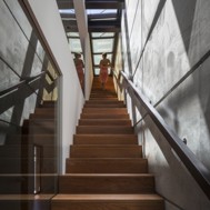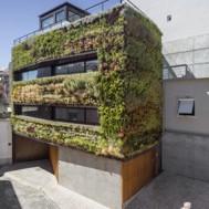 Description: From a small lot with it’s unique implantation, this project has raised early on a couple of challenges… and along with them, ideas emerged. The box housing deviates from the gable to create a vertical yard (glass box), with a straight ladder connecting all floors, an allusion to the famous stairs of Alfama, running between the all 4 floors walls and linking the various dimensions. This courtyard is the heart of the house, bringing light to the interior, enhancing the main entrance and creating a real exterior/interior relationship. In terms of material, we chose to polish the rectangular form and give the block the face of a tree, making it one more element of the square, which resulted together with the existing tree and water fountain, in a triad. The program was set up almost automatically, the technical services and garage with direct access from the street, the first floor holding the private area of the house. The second floor is the social area, with a direct connection to the coverage, extending social into outdoors, being the view related to the social side and the private area to both square and Embassy, the setting of a typical Lisbon experience, which is a truly intimate relationship between quarters. Therefore, this project is in fact a mini lung and an example of sustainability for the city of Lisbon, keeping the principles of a living typical habitat and a relationship with the outside, assuming a revitalizing urban role. Its walls are completely covered with vegetation, creating a vertical garden, filled with around 4500 plants from 25 different Iberian and Mediterranean varieties which occupies 100 square meters. So, short levels of water consumption are guaranteed as well as little gardening challenges. Different fragrance are spread throughout the 4 floors. For example, in the swimming pool you will have the flavor of saffron, in the bedroom, lavender, in the living-room, rosemary. Implemented in the heart of a busy city, the vertical garden creates an unique link with nature and an unexpected atmosphere. Architects: Luís Rebelo de Andrade, Tiago Rebelo de Andrade & Manuel Cachão Tojal Co-Workers: Madalena Rebelo de Andrade, Raquel Jorge, Carlos Ruas & Tiago Moniz Location: Travessa do Patrocínio, Lisbon, Portugal Project Year: 2008-2012 Project Area: 248 m2 Client: BWA – Buildings With Art Fotografía > FG+SG - Fernando Guerra, Sergio Guerra hacer click en las imágenes para ampliarlas |
