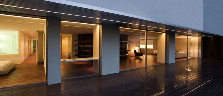 La vvienda se encuentra en la planta primera en un edificio de cinco plantas en el centro de la ciudad. La reforma parte de dos viviendas que se han unido modificando radicalmente su antigua distribución con una propuesta que diferencia claramente entre la zona de día y la zona de noche, articuladas éstas por un generoso pasillo que permite una circulación nítida entre todas las estancias y le confiere, así, uniformidad al espacio. Se ha potenciado al máximo del salón estar y el comedor mediante grandes ventanales que permiten disfrutar de una gran terraza ajardinada que recae sobre el patio de manzana. La cocina se conecta visualmente con el salón a través de unas casi imperceptibles puertas corredizas de vidrio. Los dormitorios y baños se sitúan sobre la fachada del edificio y las medianeras. El dormitorio principal mira al extremo de la terraza donde se ubica el estanque, aportando vistas y luz natural al baño interior. The apartment is located in the city centre of Valencia on the first floor of a five-storey building. This project remodels two apartments that have been joined together, radically altering the former layout. The proposal clearly differentiates day and night areas, both of them articulated around a spacious corridor which allows a clear flow from one room to another, and provides the whole space with an overall homogeneous concept. The living-room and dining-room have been enhanced to maximum effect through large windows, opening onto a large terrace with plants facing the inner courtyard of the block. The kitchen is visually connected to the dining-room by means of almost unnoticeable sliding glass doors. The bedrooms and bathrooms are located against the building’s façade and party walls. The main bedroom gives onto one end of the terrace, the part where the small pond is located, in turn allowing views and natural daylight into the inner bathroom. CASA EN LA CIUDAD, VALENCIA ARQUITECTURA: FRAN SILVESTRE ARQUITECTOS - Fran Silvestre Navarro, Maria José Sáez Domingo DISEÑO INTERIOR: ALFARO HOFMANN COLABORADORES: Dos Interiorismo (diseño cocina), José Angel Ruiz Millo - arquitectura, José Vicente Miguel López - arquitectura CONSTRUCTOR: COARCO LOCALIZACIÓN: Calle Colón. Valencia SUPERFICIE CONSTRUIDA: Vivienda: 295,00 m2 - Terraza: 75,00 m2 Imágenes gentileza > FRAN SILVESTRE ARQUITECTOS / Fotografía > Diego Opazo hacer click en las imágenes para ampliarlas |