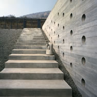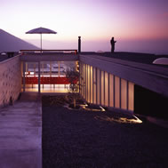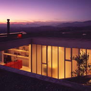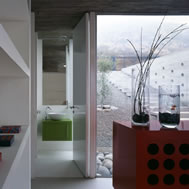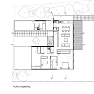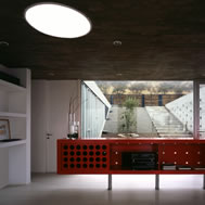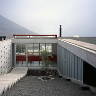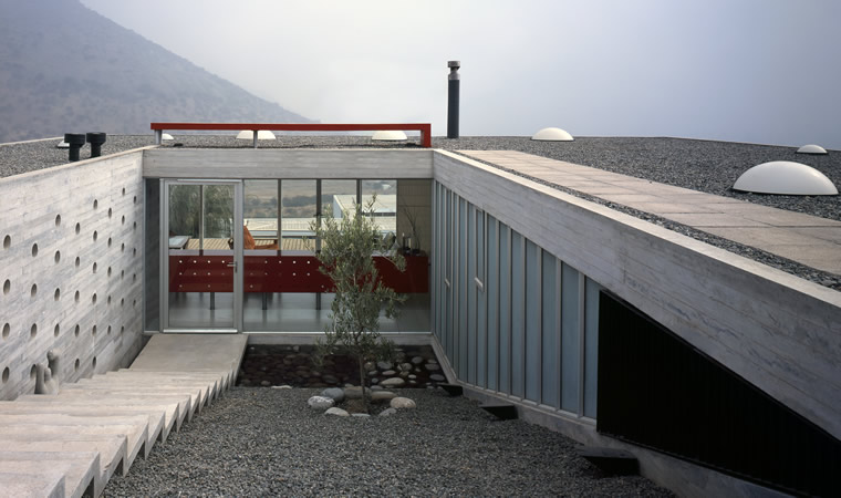 Guthrie House The commission was received from a real estate firm which wanted the design of a repeatable house, possible of being sited on a slope with 25% average gradient. The offer should be kept within an acceptable range for a standard user, a newly born family requiring an area not higher than 140 square meters. On the other hand, the stress should be set on the impact these houses should have among the projects package such offer raise. It was explicitly requested to build a house for sale, therefore, massively attractive, which "façade" the target public could quickly be absorbed with. Notwithstanding, the project location raises as a natural belvedere toward the valley of Chicureo, a zone peripheral to the city of Santiago of growing real estate development and considerably mediocre quality, where the condominium of serialization houses finally owns large green areas. It deals with new neighbourhoods with architectonic imports of every type, where "style" seems to be the worthiest slogan of the offer. On the contrary, our proposal was a counterproposal to the façade option, an absolute untying of the “pretty house” real estate concept, which image could adorn a web page accounting for a life style. Our proposal was a house without façade, a building to be developed from the street level downwards, rescuing that initial condition of natural "belvedere" over the valley the site proposed. The Guthrie house, therefore, is not just the answer to a housing issue over a medium gradient site, but a critical reflection to the real estate system which final target is to sell "attractive" and at a "good price" houses, built by "goodwill architects". In other words, sell fashion.