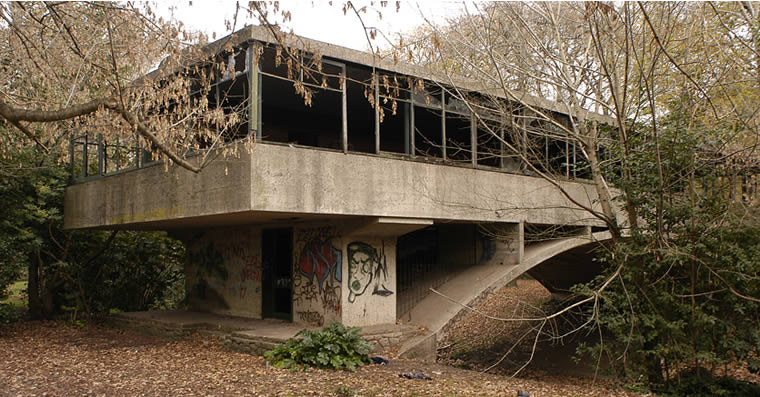 Links > especiales > Casa sobre el Arroyo en Mar del Plata, Argentina / Amancio Williams - 1943-1945 Imágenes actuales de la casa (año 2005) >>> Casa sobre el Arroyo, información sobre el incendio ocurrido en septiembre de 2004 >>> Otras obras: Pabellón Bunge & Born, 1966 / Monumento de fin de Milenio, Vicente López, Buenos Aires (1999/2000), Claudio Vekstein |