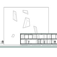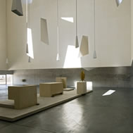 CHIESA DI FOLIGNO, ITALIA The project was won in 2001 after a national competition organized by the Conferenza Episcopale Italiana for the construction of new churches, the jury gave the following reasons for choosing, "as a sign of innovation that meets the latest international research, becoming a symbol of rebirth for the city after the earthquake." The new parish designed by Fuksas Architects, is a monolith of pure geometry, absolute, in a tin box. There are two main architectural elements that are identified with the functions of the religious center, the first element, the Church building, consists of two rectangules inserted into one another, the second element, also rectangular shape but long and low, is home to the Sacristy, the Pastora Ministry of Local and Casa Canonica. A third an architectural element, smaller, combining the latter two. Spirituality and meditation joined together in a play of natural light entering horizontally and vertically, drawing a dialogue with the sky. "The suspension of a volume within another. Seeing through concrete heaven, from outside, to inside, to outside" - Massimiliano Fuksas Enzo Cucchi, prepared for the outside of the church sculpture "Stele-Cross" in cement and white marble from Carrara. A tall totem 13.50 meter itself becomes architectural element. Mimmo Paladino created the 14 Stations of the Cross and Fuksas Design designed furniture and lighting. CHIESA DI FOLIGNO Site: Foligno, Italia Date: 2001-2009 Client: Conferenza Episcopale Italiana – Diocesi di Foligno Project: Doriana & Massimiliano Fuksas Total area: 20690 m2 Building area: 610 m2 Parish complex: 1300 m2 Structure: Ing. Gilberto Sarti Service: A.I. Engineering Artists: Enzo Cucchi, Mimmo Paladino General contractor: Ediltecnica spa Stone forniture FUKSAS DESIGN: Scalpellino Maurizio Volpi Wood forniture FUKSAS DESIGN: Falegnameria Bertini Lighting FUKSAS DESIGN: Iguzzini illuminazione
