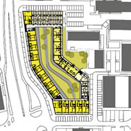 of the building: a neighbourhood with small row houses on one