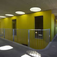 the yellow cladding of the galleries, which is widely visible