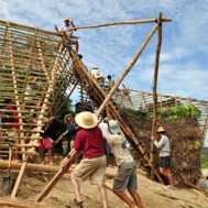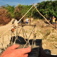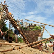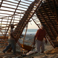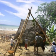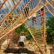 Esperanza Dos (ver > Escuela Nueva Esperanza - 18/01/10) Acá la gente vive sin luz eléctrica, sin alcantarillado ni agua potable. No usan dinero, no tienen empleo ni profesión. No miden el tiempo, no usan reloj, no usan metros ni reglas. No hay propiedad privada, no hay institución. Acá la vida es simple: si tienes sueño duermes, si estas aburrido juegas. Saben cómo se pueden alimentar, curar y proteger. Desconocen los límites, las buenas costumbres y los zapatos. No necesitan dioses, leyes o másteres. Las necesidades que tienen las satisfacen de manera casi obvia: el mar y la tierra son su supermercado y con los árboles del bosque construyen sus casas. Esta comunidad busca progresar. Pero para ellos el progreso se logra a partir del enriquecimiento personal. Un enriquecimiento que no tiene que ver con el dinero sino con el ocio, la técnica, el juego y la posibilidad de compartir. Decidimos ser parte del proyecto, entendiendo que la manera de resolver los problemas es directa, sin intermediarios. No se trata de trabajar: para hacer dinero: para contratar a alguien: que compre algo: que satisfaga mi hambre. Se trata de entender la vida, y resolver mis necesidades con los recursos que tengo: mi mente y mi cuerpo. Con materiales de dimensiones siempre variables, con la misma herramienta con la que pescan o cultivan tierra, con mano de obra hábil y fuerte que no entiende la exactitud como centímetro, con el apoyo de voluntarios citadinos con centímetros en la cabeza pero no en las manos, y en un terreno concreto de límites difusos: estaba claro que el proyecto prescindiría de levantamientos topográficos, no necesitaba Autocad ni Neufert. El dinero solo es un recurso más, igual que los recursos humanos o naturales. Un sistema simple de mínima complejidad, capaz de adaptarse a las impredecibles variables que guarda el terreno, la mano de obra y el material; permite que el diseño y las decisiones se discutan en obra. En la construcción cada persona encuentra una tarea preferida y casi involuntariamente se vuelve bueno. Inicia un proceso de perfeccionamiento de la técnica que provoca especialistas en actividades particulares y optimiza procesos. Por último la transferencia de conocimiento a otra persona es lo que termina por enriquecer el equipo. Las posibilidades del sistema permiten detener el crecimiento del edificio cuando el equipo lo considere necesario. La jornada de construcción es una semana. La meta es cimentar en colectivo un proceso lógico de construcción y entender los alcances del sistema. Conseguido esto se puede dar por terminado el trabajo cualquier momento. Dejamos que sea el tiempo el que decida hasta donde avanzaremos. El lugar se habita pronto. Es necesario empezar con las actividades para definir, de manera clara, si alguna de ellas no tiene un lugar en lo construido o si alguna de ellas requiere adecuaciones. Los límites habitables son difusos: el almacenaje está suspendido, un niño se escurre en una esquina y la transforma, el interior y el exterior no están definidos. Nos despedimos y al volver encontramos apropiaciones del espacio por parte de la comunidad: una nueva etapa construida, pisos de madera y nuevas paredes. Las piezas de cerámica que la gente encontraba en los alrededores, cuelgan de repisas adaptadas a las paredes inclinadas, a manera de museo que recuerda las culturas pasadas. En la escuela nueva esperanza, la nave espacial, los niños aprenden a volar apoyándose en el colectivo, vuelan hacia el conocimiento abstracto: hacia otros mundos. Ahora es tiempo de que vuelen solos y hacia actividades concretas y tangibles. La nave los ha transportado hasta un punto donde ahora lo que necesitan son plataformas de despegue individual. Plataformas que les permitan despegar a cada uno hacia música, carpintería o los aviones (a Juan, un niño de la escuela, le apasionan los aviones, los ha estudiado mucho, actualmente arma modelos en balsa). Al despegar ellos se convertirán en naves que transporten su conocimiento y riqueza individual hacia su comunidad inmediata y al mundo. Ficha técnica Nombre de la obra: Esperanza Dos Arquitectos: AlBorde - David Barragán, Pascual Gangotena, Esteban Benavides & Malrialuisa Borja Colaboradora: Grace Pozo Localización: El Cabuyal, Manabí - Ecuador Diseño: 2011 Construcción: 2011 Superficie de construcción: 140.00 m2 Presupuesto: US$ 700 más todo el aporte en material de la comunidad y la mano de obra de voluntarios y comunidad Créditos Fotográficos: Francisco Suarez, Esteban Cadena, Sebastián Melo, Andrea Vargas, Grace Pozo y AL BORDE