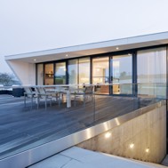 L-House by Architects Collective Living surrounded by the brilliance of natural light The new home for a young family is located on the outskirts of a small settlement in the South of Austria’s Burgenland region and is harmoniously placed into the hilly landscape. The traditional and typical L-shaped floor plan of the region was developed further in an imaginative and thoughtful way advancing modern home, energy and living concepts. The client wished for a contemporary living experience that is blended into the surrounding landscape. The result is a surprising habitat that reflects the way the family lives incorporating design quality, sustainability and functionality in everyday life. The L-House is an avant-garde architectural gem that merges the needs of it’s residents with the environment. L-Form The typical and historical L-shaped building type oft he region provided the impetus for the architects to translate the typology into the 21st century with this distinct landmark structure. Developing the form created a protected courtyard and the separate living and sleeping zones the family asked for. The generous glass areas create plenty of natural light and extend the living space visually into the garden and the hills behind it. Living Structure Cantilevering the corner of the L-shape created a covered entrance area that leads into a two-story foyer and a courtyard. The upper level is divided into a bedroom and a living-dining-kitchen zone. Between the two areas is a continuous open space that is flexible and can be altered over the years by the residents. Currently the space is being used as a children's play and reading area. Natural Light The house, with 300 m2 of usable floor area, impresses with its generous views of idyllic rolling hills flooding the interior with natural light. The deliberate and expressive building form establishes a dialogue with its surrounding landscape and feels light and airy. At the same time, the building achieved the very stringent local classification of an ultra-low-energy-house by using triple panel glassing. Additionally, the building’s orientation and its deep overhangs increased the comfort and lowered the energy costs for the inhabitants. Light, design and comfort are the key elements of this bright gem in Southern Burgenland. L-House Location: Burgenland, Austria Planning Period: 09/2009 - 01/2010 Construction Period: 10/2010 - 02/2012 Architecture: Architects Collective ZT GmbH Usable floor area: 300 m2 (excluding garage and technical rooms) Gross floor area: 450 m2 (including garage and technical rooms)