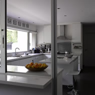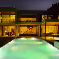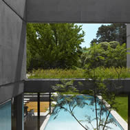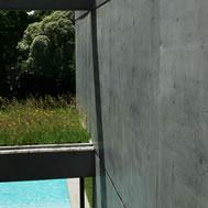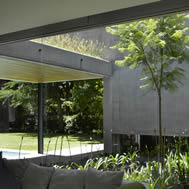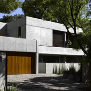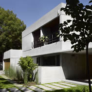 Casa en las Lomas de San Isidro, Buenos Aires, Argentina La casa se construyo en un lote de 30 mts. de frente, lo que permitió que tuviera un gran desarrollo sobre el mismo. En la planta baja se ubicaron todos los ambientes de estar con sus áreas de servicio y en la planta alta los dormitorios. Hacia la calle se proyectaron pocas aberturas para mantener la privacidad. Por el contrario hacia el fondo del lote todos los locales se hicieron vidriados . En el contrafrente, el volumen principal esta recortado formando un jardín interno . La intención fue que el verde invadiera la casa y que el jardín se metiera adentro de ella. Este pulmón interno, cuyos lados son vidriados, articula las distintas áreas de la vivienda y las circulaciones internas dan hacia el. En la planta baja sirve de separación entre el área de la recepción y la del playroom, y en la planta alta entre el sector de la suite principal y el resto de los dormitorios. El playroom se expande hacia el exterior con un gran espacio de estar semicubierto adonde se ubicaron la parrilla y el bar. A este sector de quincho se integra la pileta de natación, que es una pieza importante en la composición de la planta baja. El living y el comedor también tienen una galería, que en este caso, es de doble altura. Todos los semicubiertos están conectados entre si. Separado de la casa y por debajo del solarium de la pileta se proyecto un atelier. Este, se abre hacia un amplio patio ingles, también plantado, a través del cual recibe la luz. Se accede por una escalera exterior. La estructura esta compuesta por losas, vigas, columnas y tabiques de hormigón armado. En el exterior, todos los muros son del mismo material a la vista del mismo modo que los pisos. En el interior los materiales predominantes son el yeso pintado de blanco de los muros y cielorrasos y la madera de incienso de todos los pisos. La carpintería exterior es de aluminio anodizado natural. El hormigón a la vista le confiere a la obra un carácter muy particular. Evoca a la piedra en cuanto a su durabilidad y dureza y al mismo tiempo se realiza de una forma muy artesanal. Varios techos planos han sido plantados por razones estéticas, prácticas y ecológicas. La proporción de cada ambiente, su iluminación natural y su relación con el exterior fueron temas que se tuvieron especialmente en cuenta durante el proceso creativo.