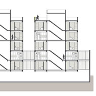 Mexico City’s most important avenue, Reforma, is going under mayor changes of density including: Luxury apartments, retail and office spaces. The question is, what happens with what’s left behind? The adjacent blocks in the different neighborhoods will be affected by these new developments, and will act naturally as service areas for this new corridor. In order to avoid massive gentrification in the area and to take advantage of the empty sites left from the earthquakes, its important to develop low and middle income housing as a counter balance to Reforma´s developments and avoid long commutes of people with lower incomes that work in this new area. These blocks have to serve as a symbiotic system all together, feeding from each other and not competing. Our Project was able to identify a series of design variables that allow the housing to gain value through time, and allow it to form a part of the existing social fabric. We developed a dense building that is designed by cutting the maximum density allowed into six volumes. Each volume is 3.60 meters wide and a separation within each other of 4 meters, this allowed each space to have cross ventilation and light. All the living spaces face west; the east side is closed almost entirely to have privacy between the units. When working with dense housing, the quality of the spaces is very important, natural light, ventilation and views when possible, the east elevation of each volume is a vertical garden to allow views for all the units. The project has 60 modules, each has 36 square meters (the minimum area for housing in Mexico). In this exercise we incorporate a mix of different and modularly units, from 36 sqm (1 module) to 144 sqm (4 modules) giving the opportunity to include bank credits for minimal housing for workers. The building has 5 levels with only 2 corridors, in the 2nd and 4th floor, the units are accessed at the same floor, and each unit has 1 to 3 floors interiorly, understanding this more as a little house than an apartment. Each module has a free plan and a service area for either kitchen or bathroom that could be programmed as needed. The materials are basic construction materials with no further finishes, cinder block and exposed concrete for the structure.