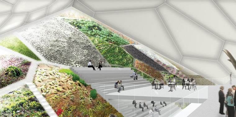 World Mammoth and Permafrost Museum in the city of Yakutsk in the Republic of Sakha-Yakutia First Prize: Balmori Associates + Leeser Architecture Project Team: Dr. Diana Balmori, Mark Thomann, Sangmok Kim, Catherine Byun, Kim Cooper (March 2008) Balmori Associates and Leeser Architecture have recently been awarded the AIA New York Chapter Design Award Project Honor for their winning competition entry for the Woolly Mammoth and Permafrost Museum in Yakutsk, Siberia. The Museum, its Scientific Research Center and Laboratory were established to study not only Siberian mammoths, but also Yakutsk’s Permafrost layer: a condition that makes the ground surface prone frost heave. With each freezing and thawing cycle, soil and stones shift into self organizing patterns and creates a unique condition known only to that region. Balmori Associates developed the plan of making a permafrost landscape, and letting this respond and be derived from its context. This integration of interface between structure and nature, the trademark of Balmori Associates, provided the twist that ultimately helped the project to win. The interior of the museum is covered with gardens that cascade down a sloped surface and help to create an healthy indoor climate. Lush mats of moss and lichen, the natural insulators of permafrost ground grow between latticework of pathways. Each moss and lichen requires different growing substrates (stone, wood, gravel, etc.) which present an opportunity for sculptural design. Based on patterned ground formations that occur above permafrost, the landscape design is both aesthetically and ecologically reminiscent of the local natural patterns.. All plants chosen are native to Eastern Siberia and are showcased as well in the extensive outdoor gardens. The Museum is to be completed in 2010. Balmori Associates, founded in 1990, is a design firm recognized for its work in integrating architecture, urban planning and landscape architecture into complex urban projects. The firm seeks to incorporate innovative sustainable systems and patterns of use within an overarching sense of place. Balmori Associates combines a high level of artistic design with a deep understanding of ecological principles.