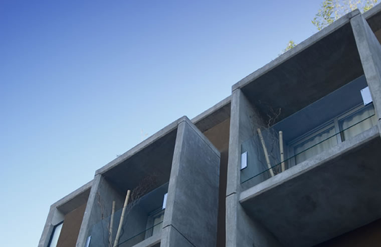 cajas de hormigón que, al mismo tiempo que vinculan a las