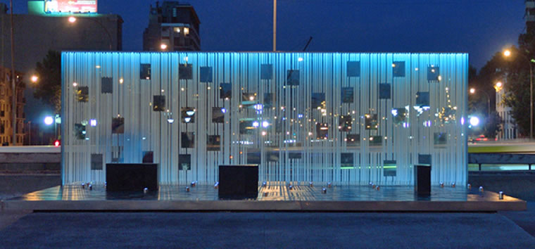 Política (Santiago de Chile) Memoria del proyecto Dentro del imaginario de los familiares de detenidos desaparecidos, no solo de chile, hay una serie de imágenes recurrentes que se constituyen como un alfabeto sensible, velas puestas en el suelo como un acto recordatorio espontáneo, los carteles que llevan los familiares en sus pechos de los desaparecidos, etc., son ejemplos constitutivos de este alfabeto. Estas imágenes con el paso del tiempo se han ido convirtiendo en verdaderos emblemas de lucha por la verdad y la justicia. El proyecto del memorial (re)construye a partir de este alfabeto sensible, la arquitectura se despojada de toda figuración, para poder acceder a sí a un estado de sensibilidad pura, que nunca termina de acontecer. La economía de los materiales, de los objetos significantes, la piedra, el vidrio, las luces, se unen y se transforman por su manipulación, ordenamiento y disposición efectiva, afectiva e intelectiva, en pura significación elocuente. Elocuencia y visualidad. La metáfora del emplazamiento, repara, repone y sustituye, un espacio latente. Por último el proyecto en palabras de Sandra Palestro, es “un muro transparente que no divide las vidas, que en cualquier tiempo y desde cualquier lugar, nos permite mirar hacia el pasado y hacia el futuro, a través de los rostros ausentes en los carteles que los familiares de las víctimas de la represión llevan apretados al corazón.” (Sandra Palestro, Discurso Premiación Memorial Memoria Mujer, Santiago, 27 de septiembre 2004). Emilio Marin