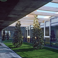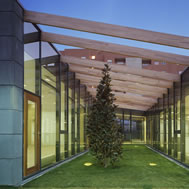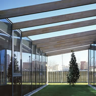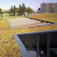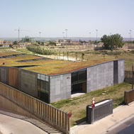 Escuela Infantil Oliver, Zaragoza (España) Enmarcada en las actuaciones del Plan de Barrios del Ayuntamiento y emplazada en la calle Antonio Leyva de Zaragoza y anexa a una dolina hoy inactiva, la Escuela Infantil Oliver se presenta ante su entorno inmediato como un elemento urbanizador. La escala de los bloques de viviendas con los que linda, representantes de la acelerada construcción residencial con una altura baja+8, convierten el equipamiento, desarrollado únicamente en planta baja, en parte del mobiliario urbano; es en si la continuación del área verde contempla el plan urbanístico para la dolina. El efecto báscula de la orografía generado por la depresión del parque reclamaba una contraposición volumétrica. La idea generatriz es la transposición en espacio construido de un tepe. El terreno se extrusiona por la acción del jardinero, mostrando su superficie verde y la tierra oscura y viva bajo ella. El contraste volumétrico, estudiado en fase de proyecto reveló la cubierta como la mayor superficie visible de la edificación. Se vislumbra por tanto la continuidad entre cubierta ajardinada y parque como elementos generadores de calidad visual y ambiental ante la construcción de bloque en altura. La solución en planta, se solventa en la relación epacios servidos y servidores intentando dar fluidez al conjunto e interés la volumetría. El programa educativo orientado al parque se resuelve en cuatro módulos: sala multiusos, 4-12 meses, 12-24 y 24-36, adheridos a respectivos patios. Como unión de todos y barrera ante las viviendas se sitúa la batería de espacios anexos, que permiten el correcto funcionamiento del equipamiento. Para unificar el volumen se recurre a celosías de madera, subrayando el límite construido. El edificio procura la versatilidad de las aulas separando estas por tabiquería móvil que permite la unión de los pares de edad en una única, posibilitando un programa educativo diferente. A esta disposición se adaptan cambiadores, aseos y dormitorios que funcionan para el estándar y la fusión. Si bien la escuela es una pieza orgánica, no abandona la prefabricación como método de control y rapidez. Todo el proyecto se modula en factores de 30 cm, carpinterías, fachada, acabados, alturas, mobiliario... La cota 120 aplicada a las alturas define en toda estancia un "nivel" permanente fijando la posición "no al alcance de los niños". Los acabados interiores se diferencian al situarse inferior o superiormente al nivel 1,20 m. La tabiquería base es doble placa pladur a dos caras (15+15+90+15+15) aplicándose sobre ella un acabado de vidrio de seguridad 3+3 mm (se considera el vidrio como una gran baldosa, fácilmente limpiable y no rompible) en el espacio niños. En las estancias húmedas (aseos, vestuarios, cocina, almacenes, etc) se eleva la cota 120 hasta la 210 (120+90) definiendo el perímetro mojable en el cual se ejecuta un aplacado de gres de 10 x 10 cm. Igualmente se diseñan diferentes encuentros con las carpinterías en los cuales la existencia de la junta de cambio de material se hace evidente y necesaria. La práctica constructiva auto impuesta es la sinceridad con los materiales sin por ello olvidarnos de las necesidades de estos. La solución constructiva se plantea desde el ahorro energético. La fachada perimetral es ventilada, pero realizada con sistemas de junta seca. De exterior a interior se compone de placas de hormigón prensado, cámara de 8 cm, placa aislamiento wallmate, lamina impermeabilizante fábrica de bloque de hormigón aislante aligerado YTONG y acabado interior de trasdosado semidirecto pladur con doble placa. El mínimo número de huecos aumenta el control del perímetro. En los patios, protegidos del ambiente exterior se permite la opción contraria con carpinterías de muro cortina con rotura de puente térmico Jansen y vidrios bajo-emisivos de control solar. Siendo la mayor fachada la cubierta, se opta en ella por el sistema de cubierta vegetal de Gisconatur, ejecutándose esta sobre una cubierta tipo deck. El resultado es una cubierta vegetal ligera que no supera los 150 kg/m2 aportando todos los beneficios térmicos del acabado natural. Tambien en cubierta se colocan placas solares para acs, habiéndose calculado la instalación de calefacción con el aporte combinado de estas y caldera de gas. En obra los problemas no aparecieron por indefinición sino más bien por lo contrario. Al haber estudiado a escala 1:5 la totalidad del volumen, la tendencia de las constructoras por soluciones historicas colisionaba con nuestra investigación previa de soluciones, si bien habituales, aun no asumidas en nuestra ciudad. Por el contrario tras sucesivos diálogos con las subcontratas obtuvimos, en muchos casos y en proporción a la sensibilidad de cada gremio con su material, la adecuada ejecución a nuestra propuesta. Del proceso mutuo de adaptación habla el resultado final. Proyecto y obra los afrontamos siendo conscientes de la especial sensibilidad con que deben concebirse entornos cuyos principales usuarios serán niños de temprana edad. El resultado son espacios austeros, muy luminosos y fluidos, acogedores y protectores. La imagen, en cierto modo dura, desde el exterior contrasta con la materialización de la luz en el interior. The site is situated in a typical spanish present-day urban expansion surrounded by uniformed eight storey high residential buildings. Our small scale intervention is dominated by a green sloping roof which relates to the topographie of the adjacent park. In its contrast to the neighbouring buildings it orientates itself by the dynamic of the direct surrounding. The concept is built up on two focus points. On one hand, there is the crucial connections to the landscape which does not only give the building its character but also strengthens the area interactively. On the other hand, it concentrates on its function as a place for children and provides an individual approach for the di