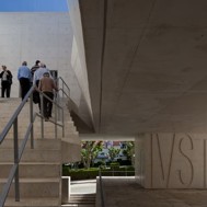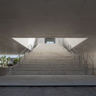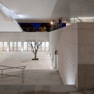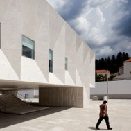 Gouveia, door for entry to the Serra da Estrela, is going to be served by new Law Courts. The land set aside for construction is located between the public gardens, at the end of the Rampa do Monte do Calvário, replacing an existing building. The project takes advantage of the demolition of the existing building, which occupied the whole of the plot, to design a new Plaza, with a scale and dignity to receive the Law Courts. In dialogue with the granite walls that define its surroundings, the Plaza takes on the form of a bottling of stone, upon which the Law Courts rest. The building, set on four pillars, ensures transparency and connection between the two gardens that delimit it to the north and the south. The dignity and symbolism that a building like the Law Courts should always have is achieved at the cost of the monolithic and singular character that the volume of white concrete acquires, above all in the expression of its compact elevations, with empty spaces deeply «excavated», as if suspended over the Plaza. A staircase of generous proportions opening onto a patio honours access to the Court floor. The lobby/foyer crosses longitudinally the entirety of the building, communicating directly with the garden to the north, establishing a relationship of closeness with the tops of the existing trees through a horizontal empty space. In the volume, the courtroom stands out, with a set of vertical skylights that subtly light the whole space. The registrars services, which operate independently, are installed in the filled part of the building, open to an interior patio which communicates directly with the north garden. The project foresees a public car park, hidden under the plaza, with access from the adjacent streets