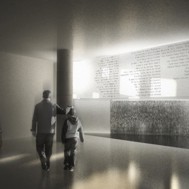 Parque Bicentenario y Museo de la Memoria, Medellín, Colombia En conmemoración de los 200 años de independencia de Colombia, se propone desarrollar un proyecto urbano Arquitectónico que genere un impacto social, ambiental y espacial en un sector que a través de los años fue deteriorándose por la invasión de viviendas no planeadas y la mala utilización de los recursos naturales. El proyecto hace parte del plan maestro del PUI Centroriental, ubicado en el entorno del barrio Boston en la comuna 10 de Medellín, entre las carreras 39 y 36 con calle 54 (caracas) y calle 51 (la playa). Su criterio de emplazamiento responde a la necesidad de recuperar un elemento Histórico y natural como la Quebrada Santa Elena, fuente hídrica importante para la memoria colectiva de los habitantes, donde se genero el primer asentamiento que dio como origen a la ciudad y que pretende ser el eje estructurante del proyecto recuperando el valor histórico que algún día tuvo. EI Proyecto plantea un área de nueva intervención en espacio público de 21.620 m2, a través de los cuales se busca la recuperación del espacio físico y ambiental de la Quebrada Santa Elena haciendo una considerable siembra de flora nativa, diseño paisajístico, consolidando el sector como una nueva zona de recreación y esparcimiento lúdico, acompañado de un teatro abierto en grama natural y de una pantalla digital interactiva de agua. Sera el inicio y el proyecto detonante de la recuperación ambiental y espacial de la quebrada como eje estructurante de espacio público. Al interior de esta propuesta se inserta un equipamiento cultural de 3.800 m2 llamado ¨Museo Casa de la Memoria¨, que busca consolidarse como un lugar de conmemoración a las víctimas de la violencia, promoviendo en sus recintos espacios que posibilitan la reconstrucción y difusión de la memoria histórica con exposiciones museográficas, con el objetivo de transformar hechos violentos en aprendizajes sociales. Es una excusa para encontrar en esta ciudad un espacio en donde los ciudadanos nos encontremos para revisar nuestra historia y ser capaces de hacer el tránsito de la oscuridad de la muerte que recorrió nuestras calles por varias décadas, a la luz de la esperanza por lograr vivir frente una ciudad que se construye con nuevos espacios para su vida. A partir de esta primicia, el edificio se desarrolla como un Túnel, de recorrido descendente, que pretende generar en su recorrer sensaciones de esta transición de la oscuridad a la luz, apoyadas con guiones museográficos y educativos, itinerantes y permanentes, que contaran historias de nuestro conflicto que se ha extendido por más de 40 años. Su programa se desarrolla en tres niveles, siendo el nivel intermedio (N 0.0) el que albergue el acceso, las taquillas y dos grandes salas de exposición divisibles dependiendo de los guiones museográficos a exponer; un nivel superior (N +4.00) donde se ubicara el Centro de Documentación , Archivo y espacio para consulta; y un nivel inferior ( N-5.00 y -6.50) donde se establecerán talleres educativos, un auditorio para 270 personas, Oficinas administrativas, Galería Infantil, Galería 3 o de salida, La Sala de Reflexión, Restaurante, tienda y Zonas técnicas. La estructura será mixta, pórticos y losas de concreto que albergaran el programa, envueltos por un esqueleto metálico que conformara la envolvente en fachadas y cubierta del edificio. Es una gran piel plegada, imagen unificada del edificio, que alberga acciones pasivas, como una cámara de aire para el control térmico, una adecuada ventilación natural para evacuar el aire caliente contenido en la cámara, disposición de vanos profundos en ángulo para evitar la incidencia directa del sol y lucernarios compuestos con la geometría del edificio para una adecuada iluminación con luz natural indirecta. In commemoration of Colombia’s 200 years of independence, rises a proposal to develop an urban project with aims to generate a social and environmental impact in a city’s sector which through the years has been deteriorating by housing invasion and the constant misuse of natural resources. The project makes part of a master plan called Central-PUI, and it is located at Boston’s neighborhood, in the 10th district of Medellín, Colombia; between the 39th till 36th Carrera and the 54th till 51st street. The design criteria for this project, responds to the need to restore a historical and natural element such as the Santa Elena Stream, an important water source for the collective memory of the inhabitants of the city. Along this stream the first settlements where originated, which later led to the development of the city as known today. This element intends to be the main and guiding axis of the project by the recovery of its historical meaning. The Project intervention develops 21,620 m2 of new public space, through which it seeks a physical and environmental recovery of the Santa Elena Stream. This will be done by a considerable amount of native flora planting, landscape design, strengthening of the sector as a new area of recreation with leisure facilities, including an open theater with natural grass and an interactive digital display of water. As said before, this project will trigger the environmental and spatial recovery of the stream, with the streams borders as the structure and primary target for public space generation. Within this proposal, a cultural