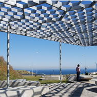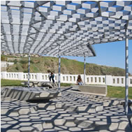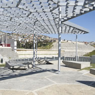 MOBILIARIO PÚBLICO - PASEO ALTAMIRANO PRIMER PREMIO Mobiliario Público Paseo Altamirano, Camino la Pólvora, Valparaíso, Chile. Concurso público convocado por Comisión Nemesio Antúnez, Departamento de Obras y Artes, Dirección de Arquitectura, Ministerio de Obras Públicas. En Diciembre del año 2004, la Dirección Nacional de Arquitectura en el contexto del Programa "Obras y Artes" del Ministerio de Obras Públicas, en conjunto con la Comisión Nemesio Antúnez, convocaron al concurso de Arte Público para la creación del diseño integral y ejecución de este mobiliario, obteniendo el primer lugar en conjunto con el arquitecto Nicolas Norero. Por diversas razones el proyecto demoró su desarrollo y posterior construcción hasta fines del año 2007. Las obras se emplazan entre el "Mirador Córdoba", y la explanada al lado sur del "Mirador El Acantilado", a la entrada del Túnel T1, en el nuevo acceso Sur a Valparaíso por el camino “La Pólvora”. Este lugar entre la ciudad y el mar, es una oportunidad para brindar a la ciudad un espacio de relevancia tanto por su apuesta plástica, como por cumplir con desafios planeados por la convocatoria: la unidad integral de componentes y la dimensión de la «quinta fachada» que permitan que una obra que se haga partícipe del recorrido y acoja un clima dentro de ella. El proyecto se emplaza en la periferia de Valparaíso en un sector que estuvo abandonado por muchos años, donde solo existía un camino de tierra y el acantilado, se planteó la oportunidad de refundar el lugar, con elementos que no tuvieran directa relación formal con el Valparaíso histórico, y que al mismo tiempo pudieran acoger diferentes posibilidades de usos y combinaciones para recorrer el borde costero. Un simple pastelón de hormigón de forma hexagonal y prefabricado, es la base constructiva del proyecto, las variaciones están dadas por las diferentes texturas y posibilidades compositivas a partir del módulo hexagonal. Los sombreaderos siguen la misma ley del modulo hexagonal y aprovechan al máximo el formato comercial del material (acero). Por último este proyecto contribuye a la puesta en valor del borde costero de Valparaíso, nuevo acceso Sur a la ciudad, en el contexto de la declaratoria de algunos sectores, como Patrimonio de la Humanidad por la UNESCO. Emilio Marin