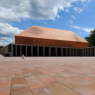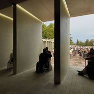 Pastoral Centre Pope John Paul II Hall, Rijeka - Croatia The Church of Our Lady of Trsat is one of the most important pilgrimage sites in Croatia. According to the legend, angels transferred the Nazareth Tabernacle of the Holy Family to Trsat on 10 May 1291 where it remained until 1294 when angels transferred it to Loreto, Italy. The first church was built at the end of the 13th century, and in the 15th century a new church and the Franciscan monastery were constructed. It was enlarged and re-constructed several times since. The idea to ad a Great Hall building to the complex is connected with the Pope’s visit to Rijeka. At the beginning of June 2003 Pope John Paul II has arrived in Croatia for the third time. Being only the second Pope to visit Croatia (the first, Alexander III has been shipwrecked in 12th century), his visits had a broader social significance. During his stay in Rijeka he has visited the Trsat church for a private prayer, and has on that occasion blessed the construction of the Monastery’s new building that would serve the pilgrims and house cultural activities of the monastery. The new building is situated by the eastern wall, where were previously located service buildings. With this reconstruction a new major entrance for the pilgrims has been created at that part, and in order to accommodate the pedestrian flow the whole wall has been recessed creating a new public walk on the outside. The new construction consists of two elements: a generic volume of the hall and a columned portico that is creating a new public square within the monastery. The Hall is cladded in a single terracotta-brick surface with a pixelized structure created by the changing gap between the elements, bringing the light in the hall. The portico is supported with a series of short concrete walls, whose functional use was recognized during the 15 August pilgrimage in 2007, when these spaces have been used for confessions. Credits: Authors: Saša Randić, Idis Turato - Randić-Turato Architects Client: Franciscan monastery Trsat Collaborators: Sinisa Glusica, Gordan Resan, Iva Cuzela-Bilac, Ana Stanicic (Technical Architects) Construction: Aljosa Travas (2008) Imágenes gentileza > Randić-Turato Architects / Fotógrafo > Robert Leš hacer click en las imágenes para ampliarlas |