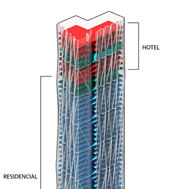 Torre R432, Reforma, Ciudad de México / rojkind arquitectos Paseo de la Reforma ha sido, desde su creación en la segunda mitad del siglo 19, una de las principales avenidas de la ciudad de México y, por su peso simbólico, por su calidad urbana comparable a aquellas emblemáticas de otras ciudades, quizás la más importante R432, sobre Paseo de la Reforma ha logrado conjuntar las mejores condiciones para un edificio de su tipo. Es un proyecto que abraza plenamente su condición urbana. El edificio se abre a la calle y la calle, garantizando plenamente seguridad, confort y privacidad, entra en el edificio. Uniendo 12 predios se logra un sitio que va desde Paseo de la Reforma hasta la calle de Tokio, abriendo así la posibilidad de hacer de Manchester una calle peatonal que da una calidad urbana singular a la fachada lateral de la torre y abre la posibilidad de que ésta se abra y conecte con la ciudad y con la vida urbana. De los 52 niveles de R432, los primeros 3 están destinados a comercios y restaurantes de lujo, que al mismo tiempo que ofrecen sus servicios a los habitantes de los niveles superiores de la torre, la conectan con la ciudad en un entorno urbano rico de experiencias diversas. Cinco niveles estarán ocupados por estacionamiento y 35 están destinados para vivienda. Habrá además pisos técnicos, de seguridad estructural y de servicios de esparcimiento y entretenimiento para los habitantes, incluyendo gimnasio, área de juegos, alberca, área de masajes y pista para correr. En los últimos 9 niveles de la torre el Hotel Buddha Bar será con seguridad uno de los lugares inevitables de la ciudad de México y, al mismo tiempo, enriquecerá el estilo de vida de los habitantes. Este rascacielos no sólo multiplica el área del suelo por cierto número de pisos, sino que intensifica de paso el potencial de uso del mismo. Más aún, el reto es no sólo apilarlos, sino implicarlos unos con otros o, mejor, complicarlos unos en otros. La torre se divide en bloques o zonas, que se identifican por un tema o, más bien, por un ambiente -imágenes de la materia-, como quería Gaston Bachelard. Cada uno implica colores, texturas, olores y sonidos. Desde el suelo, de tierra y roca, hasta el fuego aéreo en la cima, pasando por metal, cristal, agua, semillas y plantas. A partir de la unidad básica de 70 metros cuadrados que genera la estructura de la torre, las viviendas pueden sumar dos, tres o más de estas unidades, de manera vertical, horizontal o combinándolas, permitiendo distintas configuraciones espaciales y programáticas. Su vivienda puede así ocupar varios niveles y tener distintas vistas en configuraciones singulares que la distinguirán del resto. R432 Cliente: Grupo Elipse Ubicación: Reforma, Ciudad de México Construcción: 58.571 m2 Programa: Torre de usos mixtos