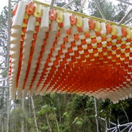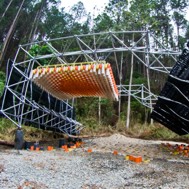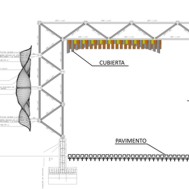 Pavilion 5.1 [Multiuse Open Classroom] The workshop presents four research branches (pavements, skins, covers and structures) as a work methodology in a quarterly academic period. It starts with an experimental phase that introduces the handling of noble materials, synthetic or recycled. In phase two is all about the handling of industrial, traditional a new generation tools, producing a scaled prototype, which ends in phase three with the manufacturing 1:1 (design, manufacturing and assembly) taking into consideration the whole planning of a construction process. The students are divided in working teams and each one of the teams is responsible for an assembly line. All four prototypes are adapted to the budget and the complexity of the material to be used. This workshop generated project discussion groups, which unifies and bond assembly teams. The seventh experience of the workshop was about the manufacturing of a multiuse open classroom, which involved the design and application of four integrated constructive components, handling industrial materials and tools. It also involved manufacturing processes, assembly procedures, packing, assembly, installation, staging, maintenance, disassembly, refurbishments and recycling.