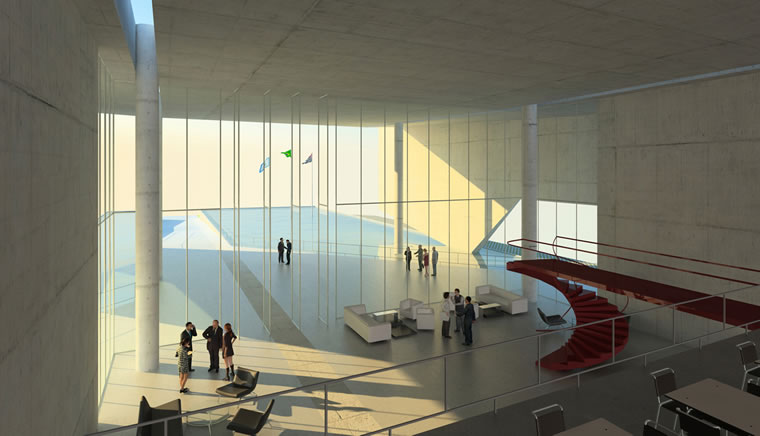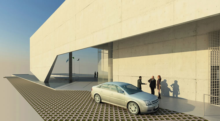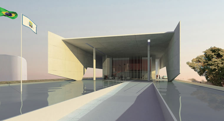 terra possível, reduzindo custos e tempo. O projeto apresentado atende integralmente ao edital proposto e tem como principal objetivo estabelecer-se como um monumento à cidade, partindo de uma tecnologia acessível, consolidando uma obra expressiva. Explorou-se uma entrada ampla e