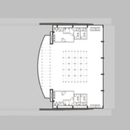 Acessos e circulação O acesso de pedestre e autos são completamente separados, proporcionando maior segurança na circulação. Uma única rampa de pedestres direciona todo o público ao hall externo, e daí segue-se a conectividade através do foyer em direção ao interior do auditório. O acesso dos veículos dá-se de dois modos: a partir do port coucher , localizado na lateral direita da construção, e; através do estacionamento localizado na parte posterior do projeto. Ambos acessos são organizados para o hall externo, sendo que do estacionamento, percorre-se um caminho lateral seguro e distinto, onde também é realizada a circulação dos pedestres que deixaram seu veículo no port coucher. O hall externo e o foyer têm como objetivo direcionar e delimitar os fluxos. A circulação interna é simples e visível, ao passo que a própria estrutura indica a circulação. A bilheteria está no centro do foyer, de fácil identificação. Para os funcionários, a circulação interna dá-se através de um corredor em formato de “c” que termina frente ao almoxarifado, conectando a sala administrativa, banheiros, copa e dispensa. A circulação interna dos artistas entre palco e os ambientes de suporte, é feita por escadas laterais, no fundo do próprio palco. Este acesso aos camarins e aos banheiros, que estão sob o palco, é pensado considerando a separação por gênero. A disposição das coxias e dos demais espaços foi calculada para proporcionar uma melhor circulação. No fundo do projeto, com acesso direto ao palco, foi idealizada uma doca de recebimento própria para caminhões e caminhonetes, que conta com uma porta de correr. Esta também comporta a possibilidade de acesso de grandes elementos, tais como automóveis, motocicletas e cavalos, entre outros mediante a necessidade do espetáculo.