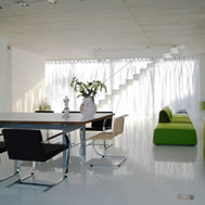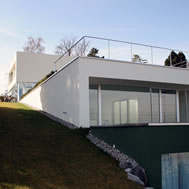 tecARCHITECTURE HQ, Ermatingen, Suiza (2008) This project is a compound of spaces on lake constance, recently finished by tecARCHITECTURE swiss AG/ tecDESIGN Los Angeles. Tec's new offices are part of the building as well as the residence of tec coo Heiko Ostmann and his family. Our company in Switzerland (tecARCHITECTURE swiss AG) acquired the site about 3 years ago to put our office , 2 rental apartment units and a house for tec coo Heiko Ostmann on it. The structure is basically a terrasse house with 4 levels (Heikos house being the upper 2), overlooking lake constanze. people shied away from that site for years (under them formula 1 racer Michael Schumacher) because of legal and structural issues. We decided to come up with a steel/concrete construction to maximize thermal storage, and guarantee large spans, in order to pull the outside and the breathtaking views into the building. all units share that view. our office on the lowest level is a simple exposed concrete loft. the building faces north, so the solar impact on the glass is negligible. the south elevation is almost completely closed--it also faces the local cemetry... The structure is roughly 900m2 and also contains some underground parking accessible by car lift. Heiko, who lives in the house with his family, and me have been with the first group of architects to address issues of sustainability in -then- Germany. We designed some of the first naturally ventilated low - impact office buildings, and have carried those ideas through our work. The Ermatingen building features state of the art sustainable technologies. Energy is being generated geothermally (we drilled 800 ft down), and solar. heating and cooling works through activated masses - hence the concrete, open floors etc. tecARCHITECTURE Imágenes gentileza > tecARCHITECTURE hacer click en las imágenes para ampliarlas |
