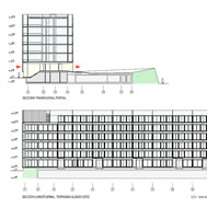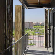 Carabanchel Housing, Madrid - Spain The site is a 100x45 parallelogram oriented north-south and limiting on the west with a new urban park and on the north, east and south with similar housing blocks, located into a new development in the south of Madrid. The regulation sets the number and type of units, that have to meet certain percentages of larger and smaller areas, and have a maximum height, but not the alignment within the rectangular plot. Given the adjacency to the future urban park and the North-South orientation of the site, our proposal was to compact the volume within the given height so that every unit will have double orientation East-West. In order to achieve this, the units become a sort of 13,40m long “tubes” that connect both façades and avoid any type of structure in the partitions between apartments. This concentration on the Western side of the plot allows us the possibility of providing a private garden for the units on the eastern side, to be located above the parking belonging to the units. The residential units are therefore opened to two different gardens on each orientation, and are fully glazed in the façades. Each side of the building is provided with a 1.5m wide terrace along the full façade that will make possible a semi-exterior type of use during certain seasons. These terraces are enclosed with bamboo louvers mounted on folding frames that will provide with the necessary protection from the strong East-West sun exposure, provide security to the units and open entirely to the side gardens when desired. There has been much talk in the past few years about exploring the potentials of customised residential typologies, and the possibility of a differentiated appearance of the units so that inhabitants would have the opportunity to acquire some form of personal identification with their residences. Even if the approach is a legitimate and interesting one, the experiments developed so far have evolved into rather arbitrary arrangements of difference where some of these identities become purely colourful and cosmetic. The risk of this approach is to fall into some sort of provincial ideology in which contemporary urban inhabitants are looking to their homes to be different and specific, while in fact one of the advantages of metropolitan living lies in the possibility of being anonymous, of losing the sort of rural or bourgeois identification between the home and its inhabitant. These sort of developments absorb substantial resources in this sort of cosmetic contortions sometimes at the expense of quality of detail and quality of space. Our experiment with this project of low-cost residences was to provide the maximum amount of space, flexibility and quality to the residences, and to erase the visibility of the units and their differences into a single volume with a homogeneous skin able to incorporate some gradation of differences not dependent on the architect’s vision, but on each inhabitants desires.