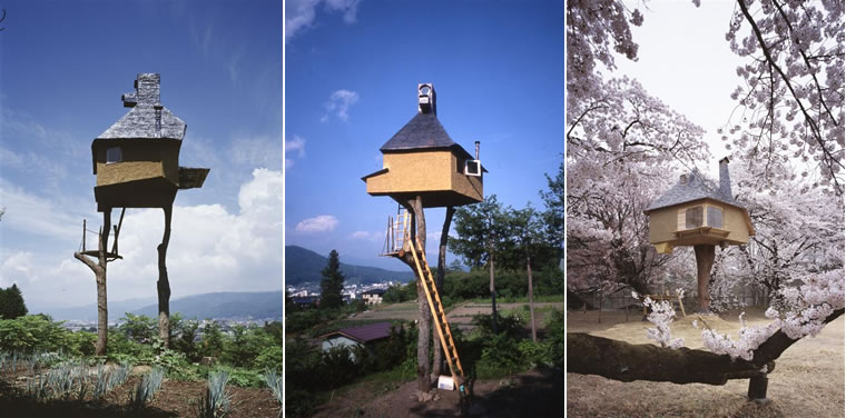 Terunobu Fujimori se considera 'observador profesional de arquitectura'. Sostiene una teoría, que compara al 'observador profesional' con el luchador de sumo: el observador lucha con sus ojos y sus oponentes son estructuras. Sus victorias se producen cuando descubre algo sobre el edificio ignorado por su propio autor, cuando efectúa algún descubrimiento sobre cómo el edificio fue hecho, sobre su belleza, sobre sus principios de diseño. Sus ojos no buscan arquitecturas imponentes, sino poéticas: estructuras en las que se revela la sustancia compleja y atemporal del hecho de construir y habitar, surgidas de la pervivencia de una sabiduría profunda que se ha manifestado esencialmente en construcciones vernáculas, escondidas. Para Fujimori, tanto el conocimiento como la emoción ante la arquitectura son una misma cuestión visceral, absolutamente de instinto. Su visión es la de la arquitectura que se siente 'del cuello para abajo', vinculada al ser de la tierra, y que denomina 'roja', por ser el color de la sangre, y porque instiga un sentido consciente de la existencia. La heterodoxia de su obra surge de concebir una arquitectura orgánica, un híbrido consustanciado con la Naturaleza. Sus edificios buscan deliberadamente una tosquedad en la ejecución, un carácter de manufactura artesanal que permita una preservación de las cualidades esenciales de cada material y, simultáneamente, a través de la manipulación por la mano y el intelecto humanos revelen una de las posibilidades de expresión de su profunda belleza en estado puro. En su aspecto de ancestralidad, es arquitectura plenamente contemporánea, fruto de una fuerte y rebelde libertad creativa que desea mantener vivo el aferramiento a una sabiduría primitiva que hace de cualquier acto humano un gesto que exprese su vinculación a la armonía de la naturaleza. El apasionamiento fascinado por construir late como una actitud espiritual. 'Takasugian', la 'casa de té demasiado alta', es su obra donde se expresa con mayor fuerza cómo esa rebeldía de Fujimori consiste en crear estructuras a través de las que se exalte la presencia de lo humano dentro de la energía de la Naturaleza, y el ser humano se erija en intérprete de su belleza. Extraña, como si no fuera un artefacto hecho por el hombre, es una construcción destinada a acoger una pequeña estancia donde se celebra la ceremonia del té, el ritual japonés a través del cual se eleva a la sublimación el acto sencillo y cotidiano de preparar, tomar y servir esta infusión: una ceremonia imbuida de una dimensión religiosa y espiritual, en la que se expresa el wakeiseijaku -el respeto mutuo que hace surgir una armonía entre personas y objetos-. Imaginada como una guarida en lo alto de los árboles, con diez metros de altura, la sala se sustenta sobre los troncos de dos castaños talados en un bosque cercano. A su pequeño interior, de menos de seis y medio metros cuadrados de superficie, se accede a través de un pequeño hueco al que se accede a través de una escalera. La estancia es austera, reducida a lo esencial -como es norma para las estancias destinadas a acoger esta ceremonia, en las que la tarea del arquitecto es impregnar de sensorialidad espiritual a un espacio casi vacío- embellecida por tres pequeñas ventanas, un fragmento de uno de los troncos sustentantes y un pequeño lucernario revestido con pan de oro barnizado. Manejándose con fuerza entre los límites conceptuales, paradójicamente no restringidos por condicionamientos materiales que deben aplicarse a la creación de una sala para la ceremonia del té, Fujimori concreta su manera de construir un mundo sencillo a partir del reconocimiento de su complejidad, rechazando amaneramientos, sin apelar a la facilidad y a la literalidad de rasgos regionalistas o folklóricos sino desde un fundamento ideológico cuyo sustrato profundo es el reconocimiento y veneración de lo sagrado que constituye la materialidad primigenia de nuestro mundo real. Diluyendo fronteras, 'Takasugian' es una estructura arquitectónica cuya materia y espíritu le hacen un ser y alma de la naturaleza.