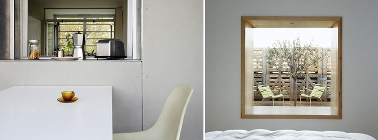 Trabajar o escribir ante una ventana cubierta de plantas enredaderas; ver la luz del sol extenderse sobre el suelo; estar de pie mirando a través de la ventana; poder ver el paisaje, la vegetación o los árboles mientras se está sentado; acceder fácilmente a nuestras pertenencias sin advertir su presencia constantemente; leer en la cama; sentarse cómodamente y poder hablar sobre una velada; disfrutar de buenos niveles de ventilación en verano; bajar persianas de madera en invierno. Alison y Peter Smithson realizaron esta enumeración de detalles acompañados de dibujos hechos a trazos, listados bajo el título ‘Pequeños placeres de la vida’, ilustrando un artículo que reflexionaba sobre las transformaciones sobre la forma y el espacio de las viviendas modernas que se publicó en 1957. Deleites que encapsulan una concepción ideal y armónica de la arquitectura que debe servirnos para habitar y que suenan altamente seductoras para estos tiempos en que el reencuentro con la sencillez ha sido convertido en un concepto de moda, pero que hoy, tal como los Smithson lo hicieron, debemos entender y proclamar fundamentalmente como la afirmación de una convicción firme y profunda acerca de cuál es la función primordial de la arquitectura. La creencia en esos principios es la responsable del edificio de 27 viviendas para jóvenes en Barcelona y el Hotel Aire de Bardenas (Tudela), dos obras realizadas por Emiliano López y Mónica Rivera y que han recibido en 2008 el Premio FAD de Arquitectura y el premio Internacional para Arquitectura Emergente otorgado por la revista Architectural Review de Londres respectivamente, y en las que vibra de manera clara una sensibilidad que calladamente exuda como primer valor la fuerza de una honestidad que parece instintivamente buscar como primer principio aquel talento que los Smithsons admiraban en Le Corbusier: saber hacer de la necesidad disfrute de uso, trabajando aferrados a un sentido común que es consciente de la obligatoriedad de hacer de cada arquitectura una forma de suave y accesible lirismo, incapaces y sobretodo desinteresados de agarrarse a caprichos o fatuidades para hacer de ellas pretextos o falsos experimentos que pueden transformar en entidades yuxtapuestas a individuo y edificio. Su arquitectura opta por adecuarse a los principios que la hagan ser algo hecho a medida y necesidad de lo humano; que elige ligarse y aprovechar las condiciones del entorno para ajustar nuestras rutinas a los ritmos de la luz, de las estaciones, de las imágenes que nos rodean…para gozar a través de lo construido de un bienestar comprendido como apacibilidad para los sentidos y el espíritu y que, desde ese disfrute, convierte la relación del individuo con la arquitectura en una vivencia integral, no limitada a ser un mero acto funcionalizado, anestesiado, del habitar. Esto es algo evidentemente perseguido y notablemente logrado en el edificio de viviendas sociales en Barcelona, un proyecto para el Institut Català del Sòl que plantea una ruptura con los estereotipos sobre la concepción y uso de la vivienda a través de la reflexión minuciosa sobre las necesidades cotidianas de una persona joven hoy. Reivindicando la factibilidad de lograr una vivienda social eficiente y dotada de buenas cualidades espaciales, han recuperado en este proyecto elementos propios de la arquitectura vernácula mediterránea evidenciando su vigencia y han planteado una diversidad de espacios que prolongan el ámbito privado en diferentes ambientes públicos y semi-públicos que redefinen el sistema doméstico a partir de esas posibilidades de uso del interior y el exterior. La responsabilidad respecto a lo social adquiere en el trabajo de Emiliano López y Mónica Rivera su propio modo de definición, que posiblemente haya que comprender vinculada a su aproximación a este proyecto como realizado ‘de dentro hacia fuera, algo que puede interpretarse como una concepción del individuo y lo humano como principio básico para producir una arquitectura que sirva positivamente a la sociedad. Los apartamentos del edificio de viviendas poseen de base la misma delicadeza y amable elegancia de los interiores del Hotel Aire de Bardenas, una construcción que se desarrolla en planta baja, tratando que la monocromía de las estructuras cúbicas prefabricadas que lo conforman no destaque entre la impactante serenidad del paraje desértico donde se ubica, ofreciendo a los usuarios ambientes despejados, sencillos y silenciosos que les acerquen a la belleza austera y rural del paisaje. Los tiempos en arquitectura son cíclicos. Los vaivenes, tanto económicos como culturales, son determinantes de los modos y las tendencias que deben seguirse, a las que algunos pocos se resisten y plantan cara. Que un premio como el FAD recaiga sobre un edificio de protección oficial muestra a las claras un cambio de ciclo, más aún cuando el premio se otorga a unos arquitectos que no pertenecen a la línea mediática (entre los finalistas figuraban algunos de ellos, presentando edificios fastuosos) y que hacen de su trabajo un acto de proclamar el agotamiento de la objetualidad, la necesidad de volver a entender que arquitectura y usuario son conceptos necesariamente complementarios y no contrapuestos. El doble reconocimiento a estos arquitectos no es mera casualidad: probablemente que este año se hayan llevado estos galardones sea un signo dictado por este incipiente cambio en la dirección de los vientos. Emiliano López y Mónica Rivera materializan el progresivo acontecimiento de un cambio silencioso hacia una arquitectura comprometida, que retoma un modelo social entendido de manera profunda y amplia, la cual se había perdido deliberadamente bajo los fastos de la tecno-posmodernidad puesta al servicio del poder y de la prensa arquitectónica en detrimento de aquella otra arquitectura pensada para el ser humano. Y es preciso enfatizar, ante esas súbitas y oportunistas conversiones o esas 